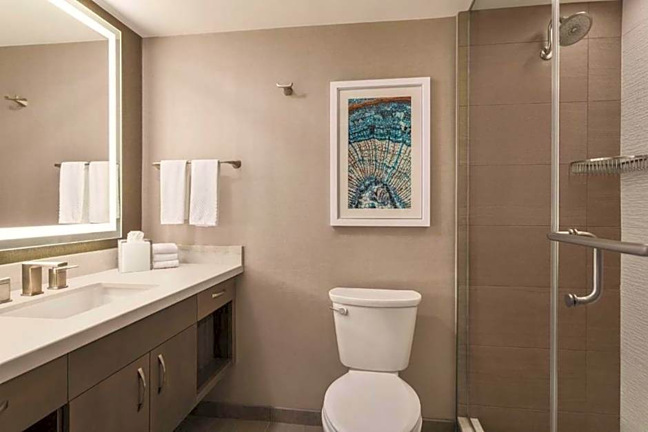 This hearing-accessible executive level room features a visual alarm and notification devices for the doorbell or door knock and incoming telephone calls. Please note, corresponding photos may not reflect the specific accessible room type or room feature.
